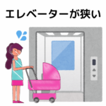 エレベーターが狭い マンションのエレベーターが思ってた以上に狭かったり、折りたたんだベビーカーが思っていたより大きいということがあるので、よく調べましょう。 |