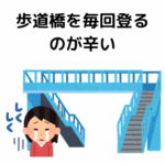 歩道橋がある 歩道橋を渡らないとスーパーや駅にいけない場合、大きいベビーカーだと毎回辛い思いをします。その場合は軽くて比較的持ちやすいベビーカーを選ぶべきですね。 |