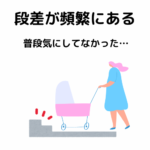 段差 ベビーカーを押して歩くと途端に段差がいっぱいあることに気がつくと思います。段差が多い地域では操作性のよいベビーカーが良さそうですね。 |