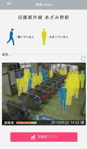 このアプリは、「駅視-vision」というものを搭載しており、下記のように駅の状況が丸見えです!