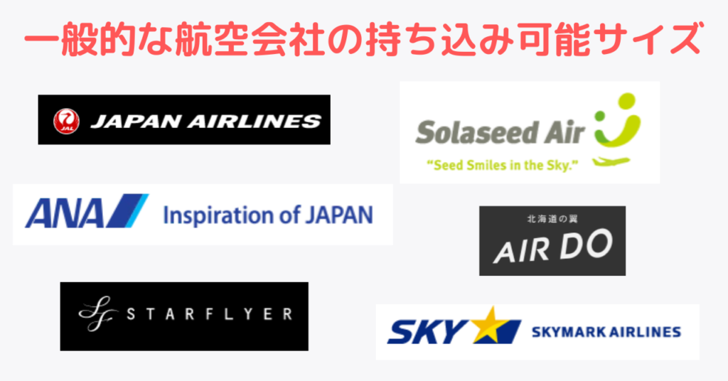 一般的な航空会社(JALやANA)の持ち込み可能サイズ