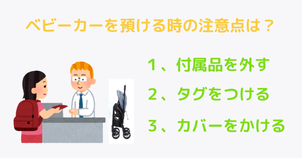 ベビーカーを預ける時は、手荷物カウンターで預けることになりますが、いくつか注意点がありますので、事前に確認をしておきましょう。